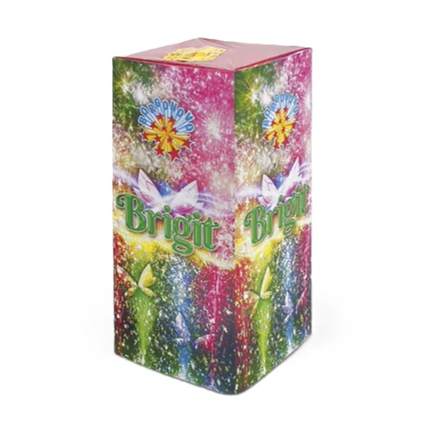Batteria di 4 fontane assortite rosso, verde lampeggiante, rosa e blu con cracker argento e crisantemi oro!